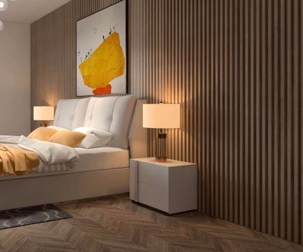 Si buscas un toque más exclusivo, ofrecemos revestimientos alistonados de PVC que aportan un valor estético superior. Además, contamos con paneles acústicos con una base fonoabsorbente ignífuga, así como listones de madera chapada con un elegante acabado en barniz mate (2700 x 325 x 21 mm).